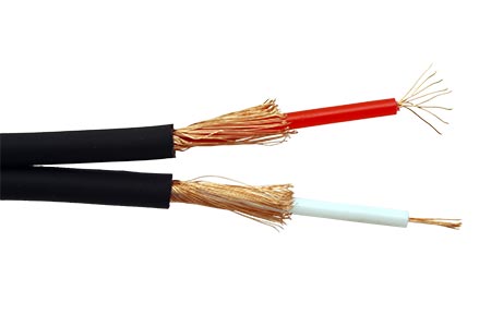 Kabel: 2x koaxiální kabel (vnitřní žíla: AWG 23, lanko 8x průměr 0,2mm, stínění: 95 x průměr 0,1mm);