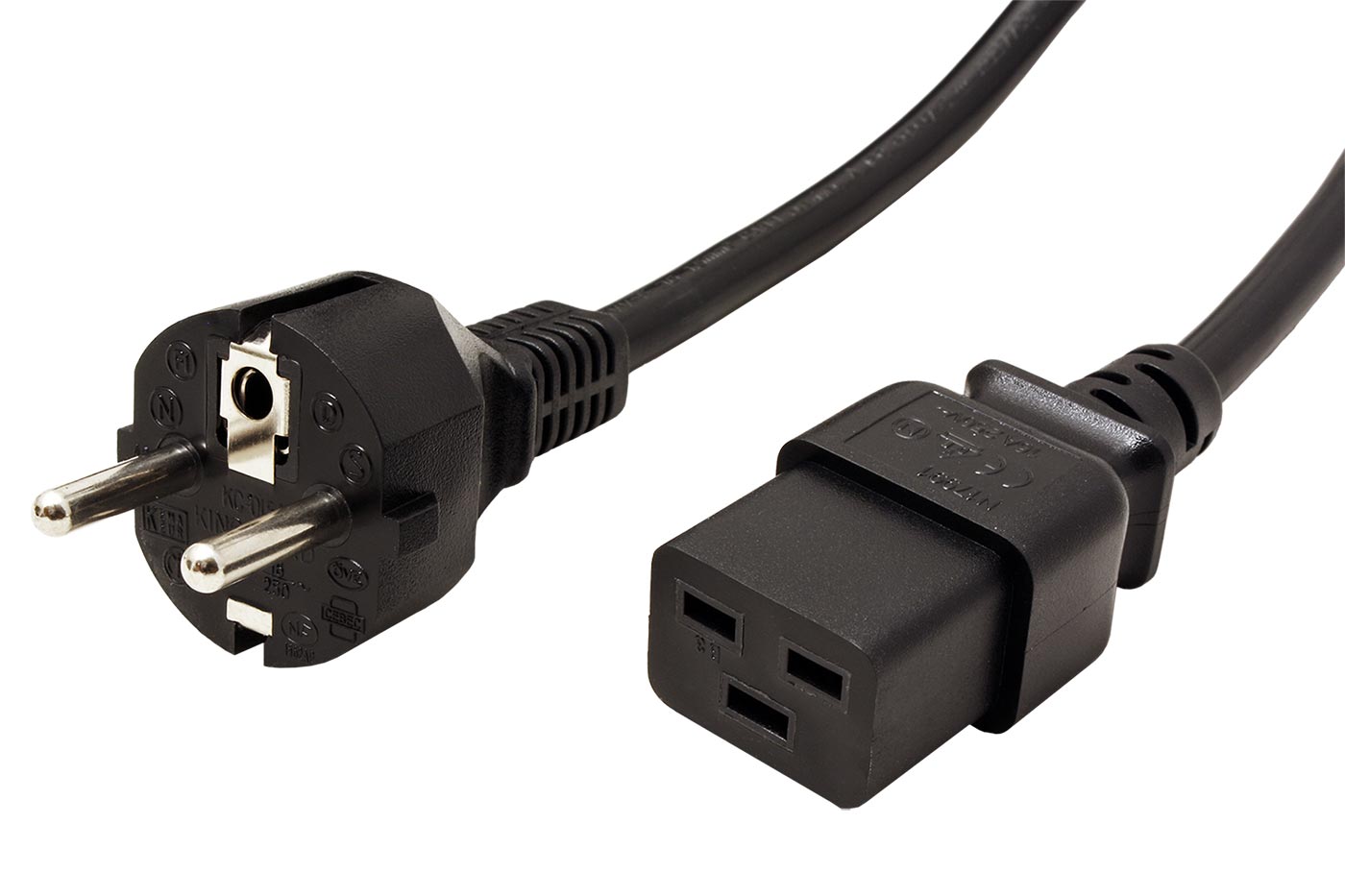 Kabel síťový 16A, CEE 7/7(M) přímý - IEC320 C19, 1,5m