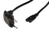 Pokud potřebujete zapojit zařízení s konektorem IEC320 C8 (2 kulaté kontakty) k rozvodné síti, použijte tento kabel. Síťová vidlice je lomená pro úsporu místa při zapojování.