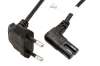 Použití: Pokud potřebujete zapojit zařízení s konektorem IEC320 C8 (2 kulaté kontakty) k rozvodné síti, použijte tento kabel. Oba konektory jsou lomené pro úsporu místa při zapojování.;