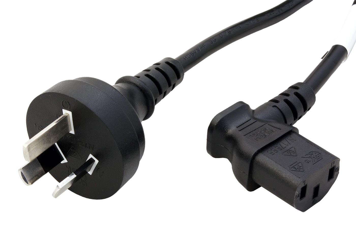 Síťový napájecí kabel s vidlicí typu I (Austrálie, Nový zéland). Lomený konektor C13.