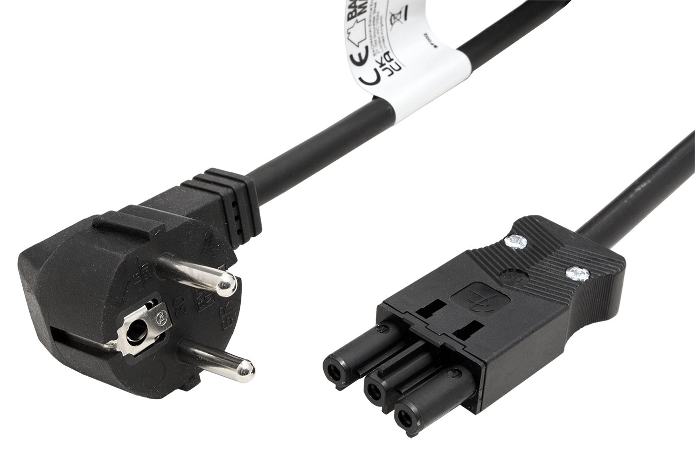 Pokud potřebujete zapojit zařízení s větším odběrem k rozvodné síti se zásuvkou typu E nebo F (CZ, FR DE), použijte tento kabel. Na zařízení (obvykle speciální aplikace jako stavebnicové zásuvkové systémy, osvětlovací systémy...) musí být osazeny konektory GST18M (kulaté kontakty v řadě).