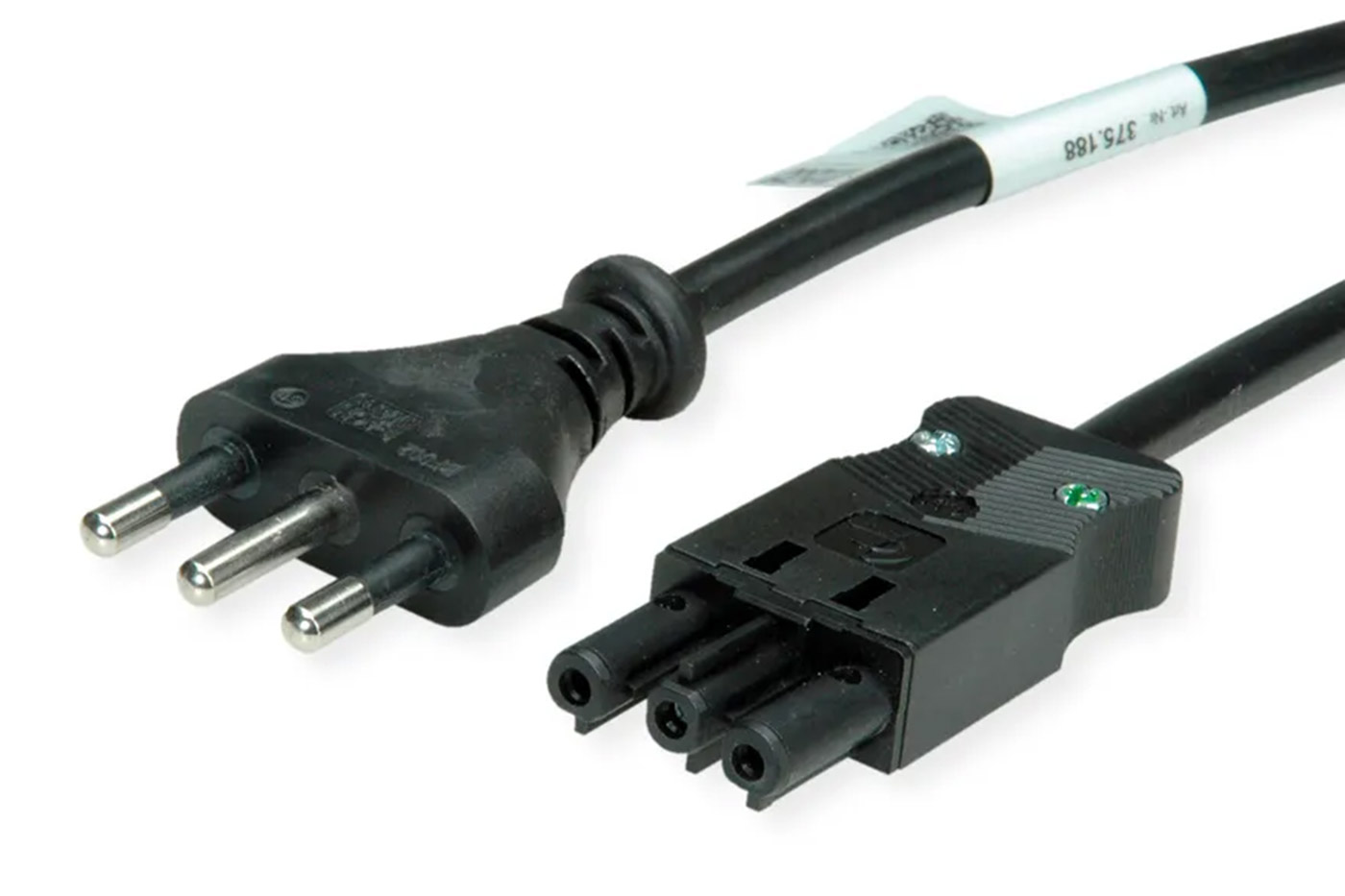 Síťový napájecí kabel s vidlicí typu L (Itálie) s konektorem Wieland GST18i3.;