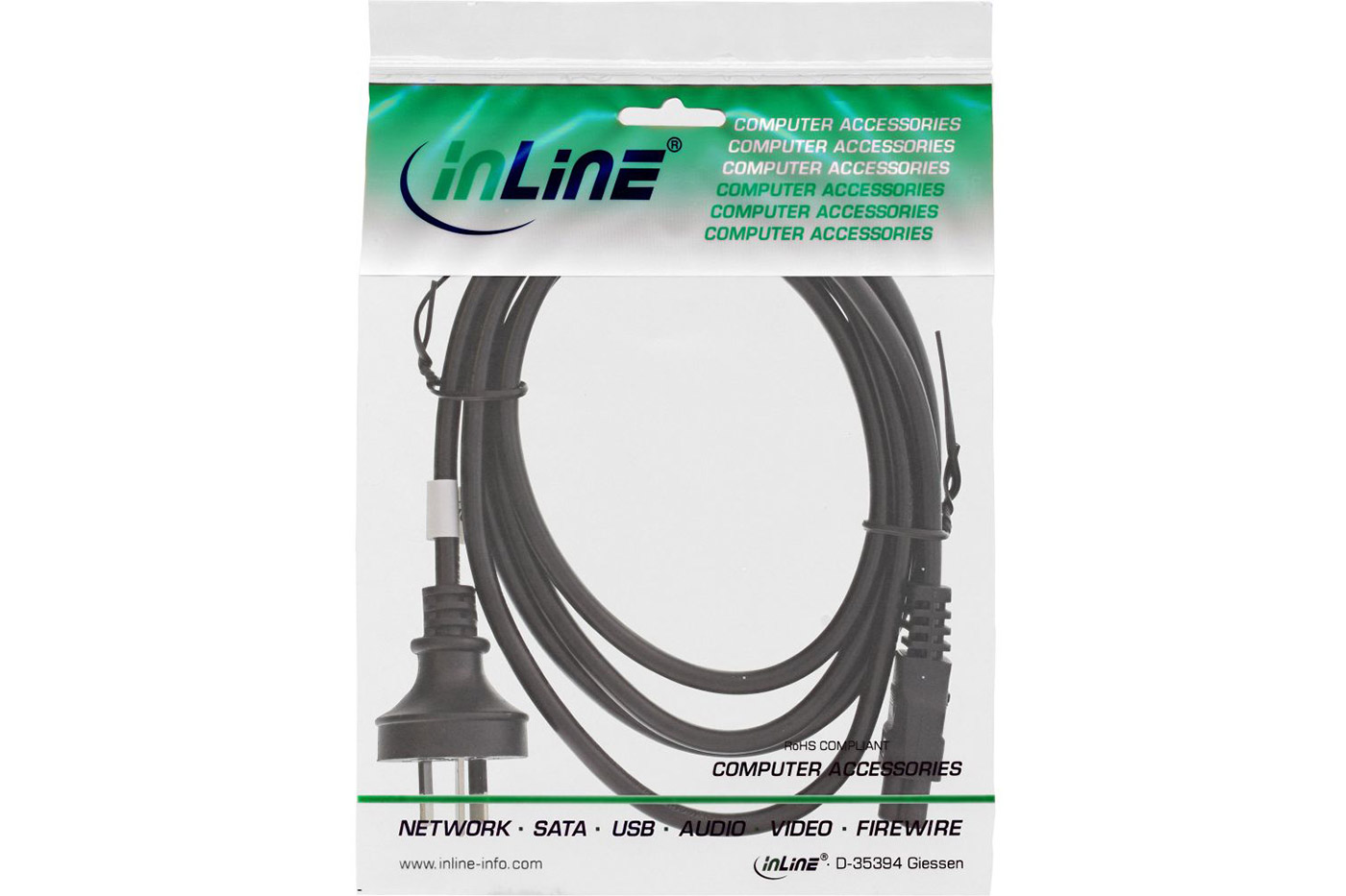 InLine Kabel síťový k notebooku, Austrálie AS 3112 (typ I) - C5, 2m, černý