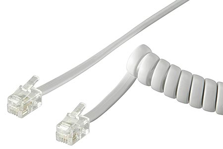 Kroucený kabel s konektory RJ9 pro připojení sluchátka k telefonnímu přístroji.