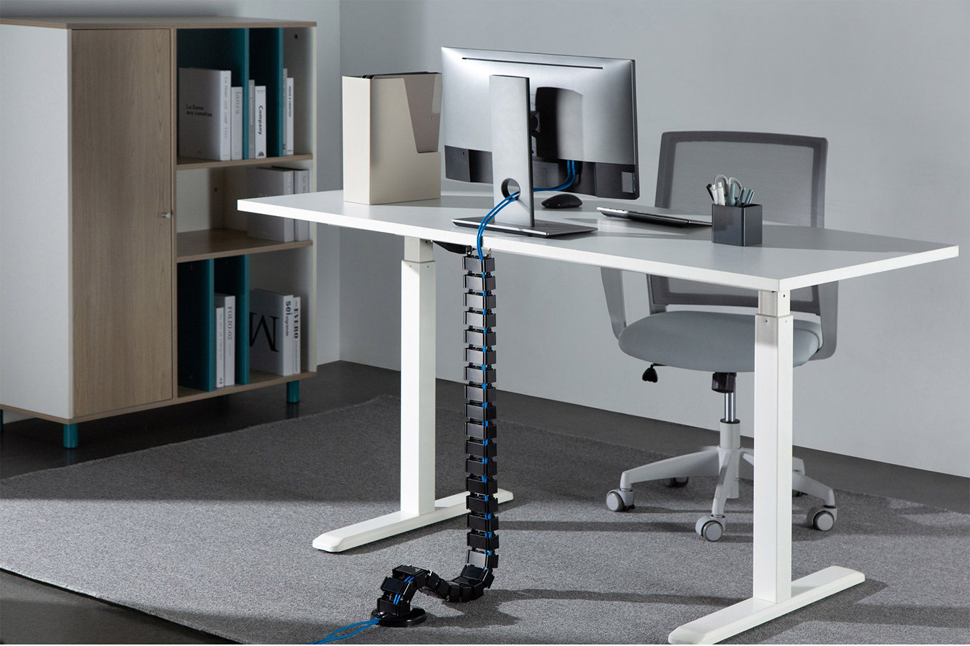 S osazenými zakončovacími prvky je především určen pro vertikální uspořádání kabelů mezi stolem a zemí.