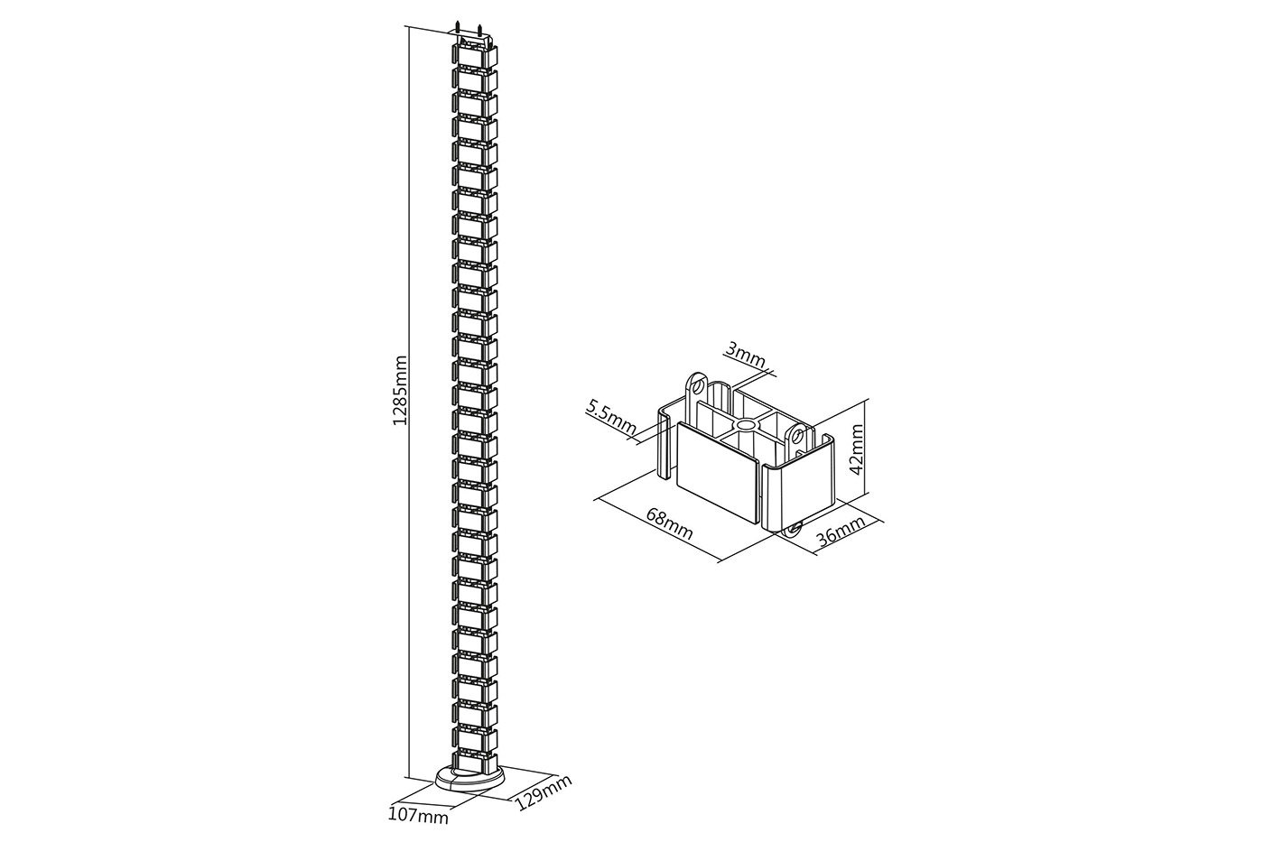Použití: S osazenými zakončovacími prvky je především určen pro vertikální uspořádání kabelů mezi stolem a zemí.;
