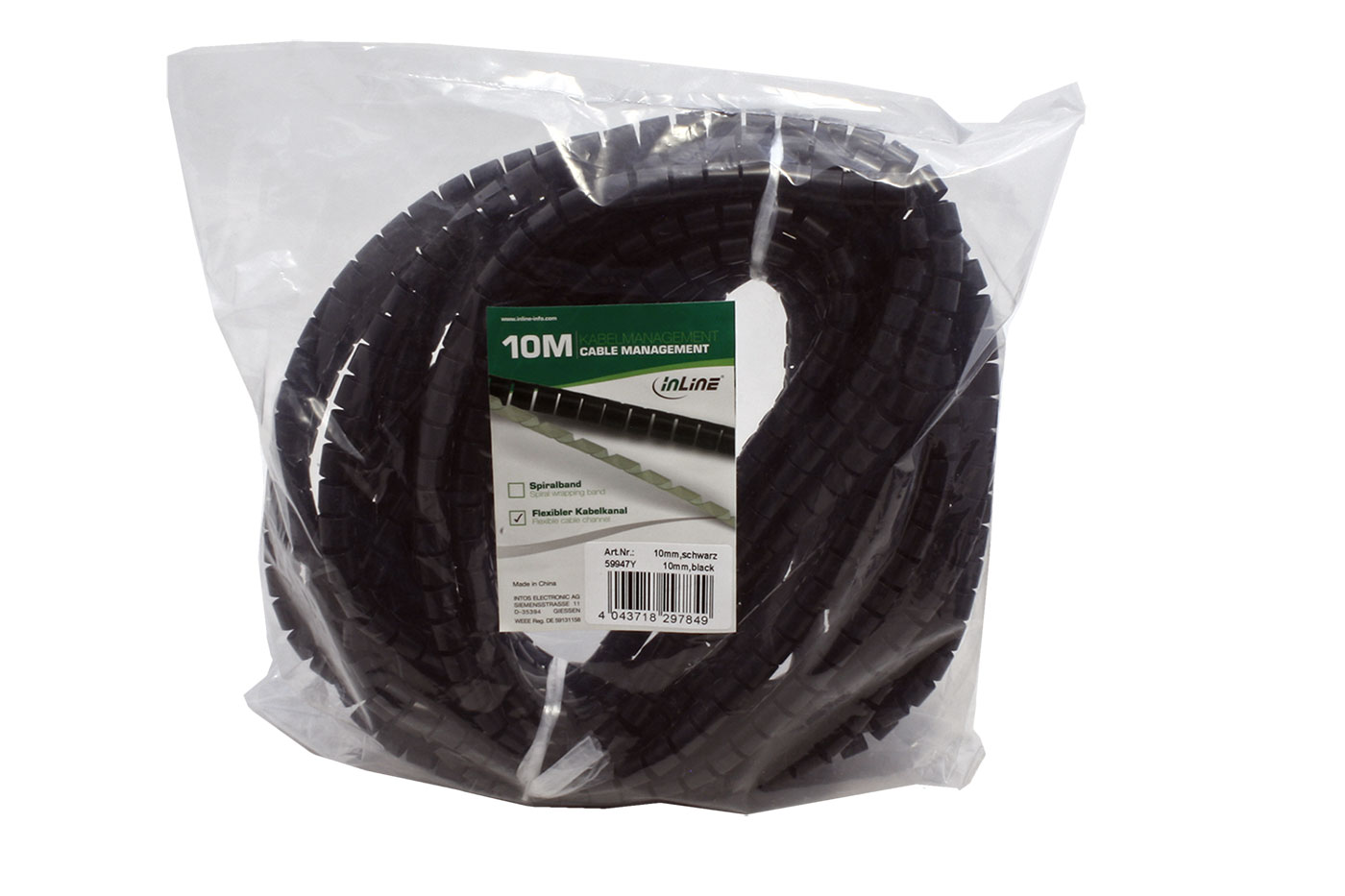 InLine Kabelový organizér, průměr 10mm, se zaváděcím nástrojem, 10m, černý