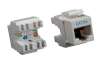 Konektor RJ45 kategorie 5e v provedení pro osazení do panelu (keystone) s nařezávacími kontakty a vývodem kabelu v pozici 180° proti konektoru.;