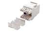 Konektor RJ45 kategorie 6 v provedení pro osazení do panelu (keystone) s nařezávacími kontakty a vývodem kabelu v pozici 180° proti konektoru.;