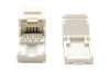 Konektor RJ45 kategorie 6 v provedení pro osazení do panelu (keystone) s nařezávacími kontakty a vývodem kabelu v pozici 180° proti konektoru.;