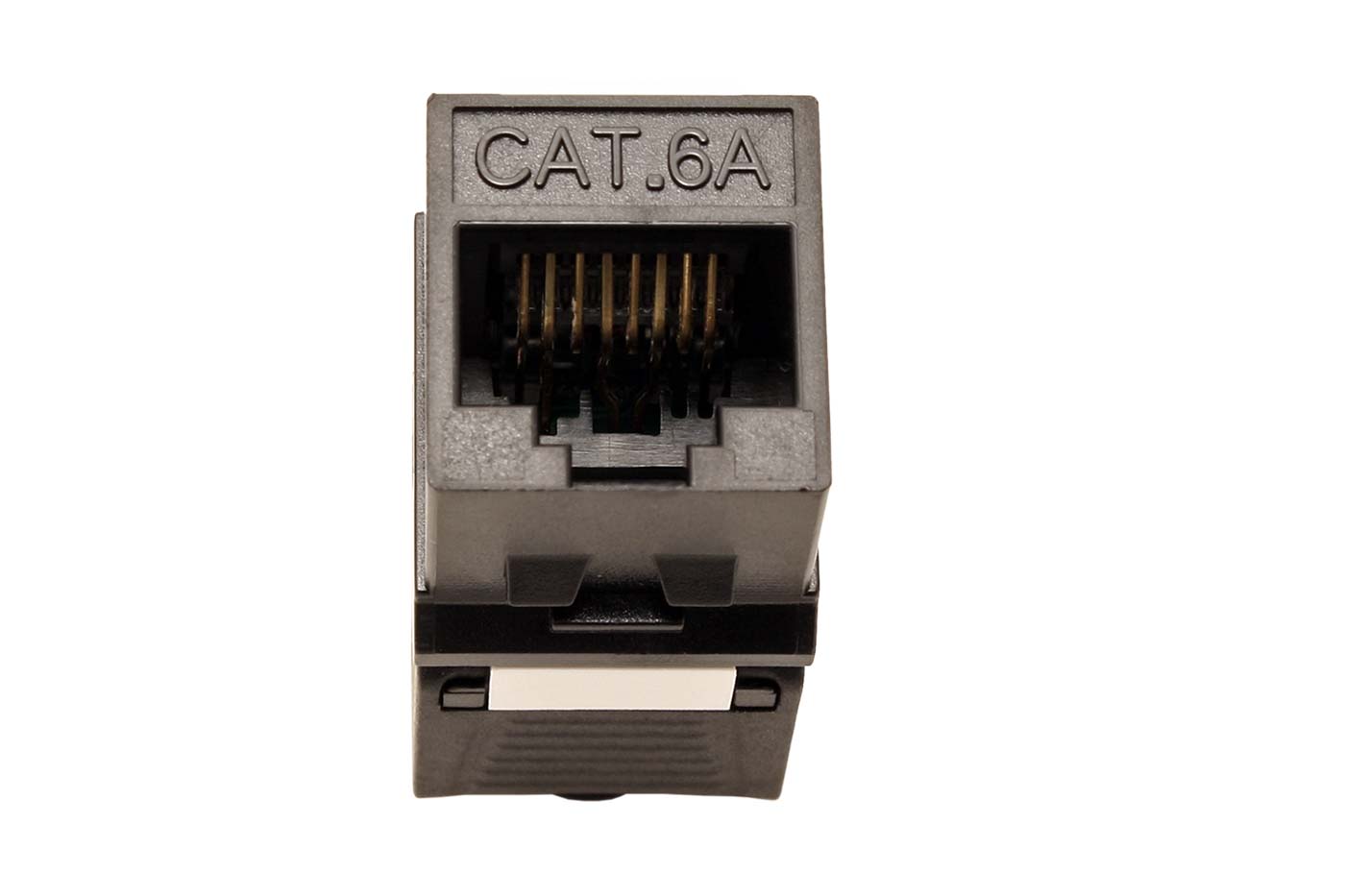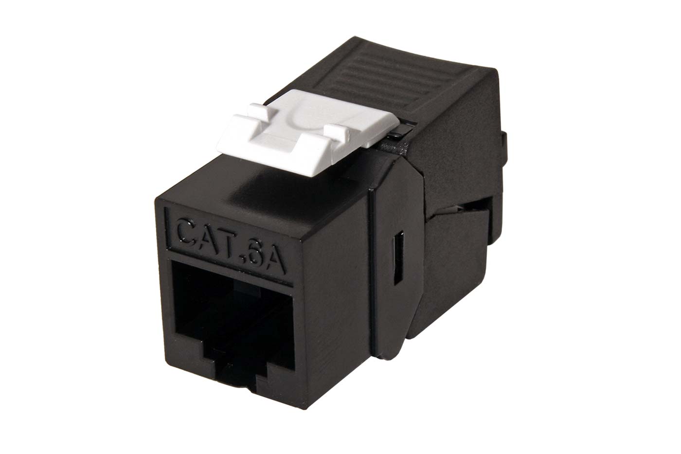 Keystone konektor RJ45 kat. 6a, černý, nestíněný, 180°, montáž bez nástrojů