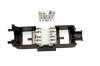 Konektor RJ45 kategorie 6a v provedení pro osazení do panelu (keystone) s nařezávacími kontakty a vývodem kabelu v pozici 180° proti konektoru.