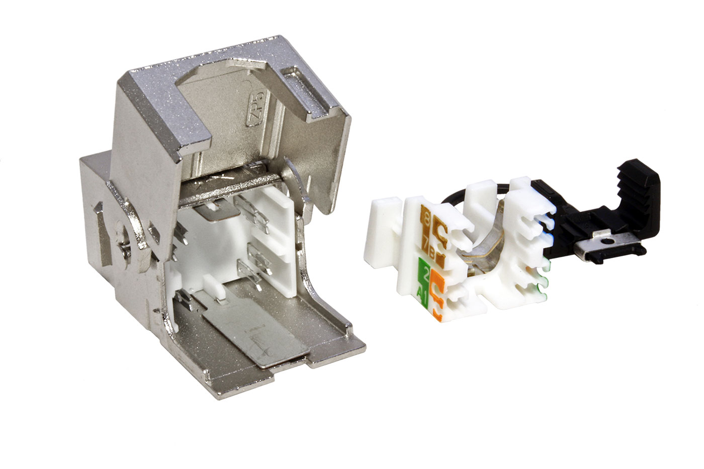 METZ CONNECT Keystone konektor RJ45 kat. 6a, stíněný, 180°, montáž bez nástrojů