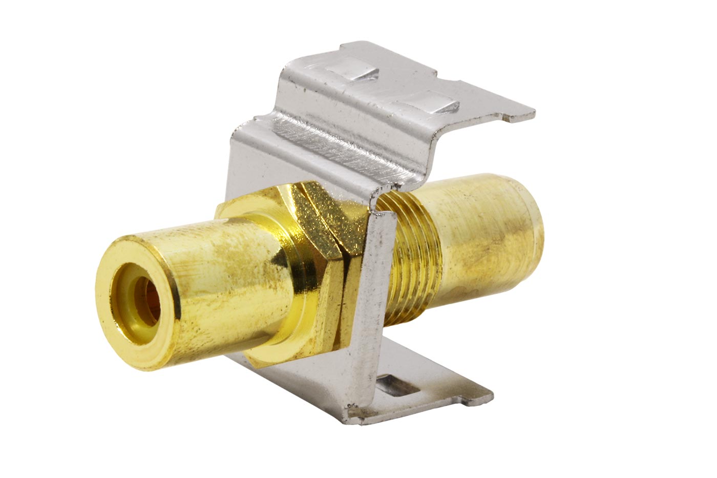 Keystone spojka cinch (RCA) konektorů s kovovým tělem modulu.;