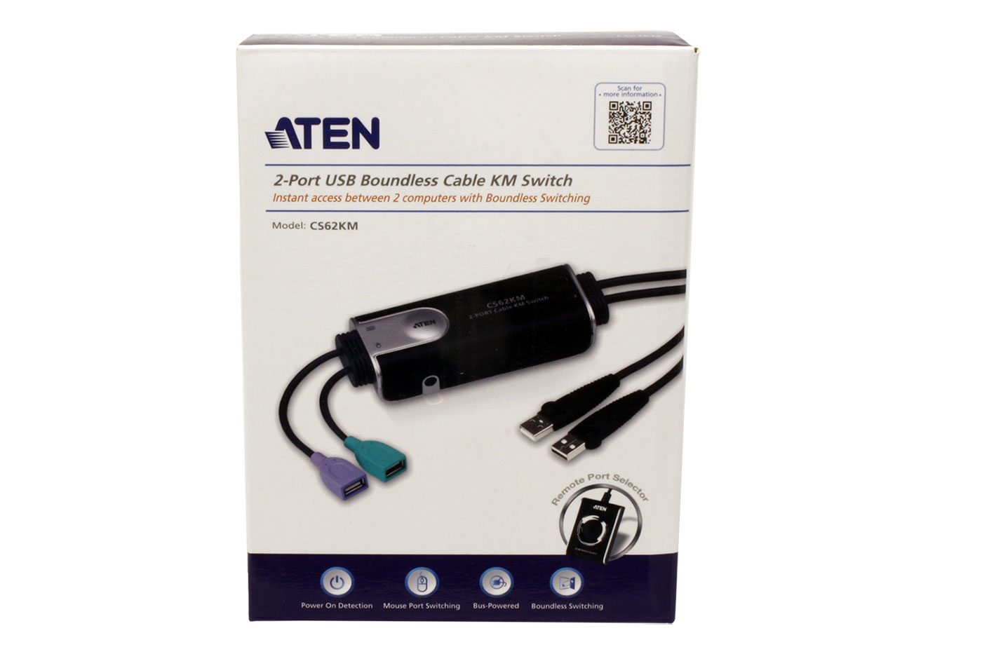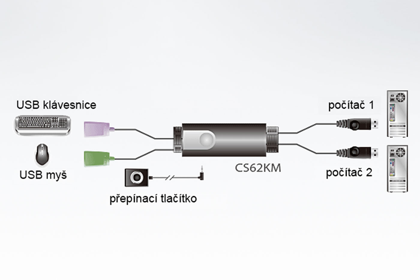 Aten KM přepínač (USB klávesnice a myš) 2:1, USB, integrované kabely (CS62KM)