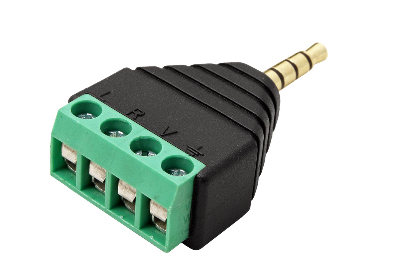 Konektoru jack3,5mm 4 pinový (TRRS) s přípojnou svorkovnicí.