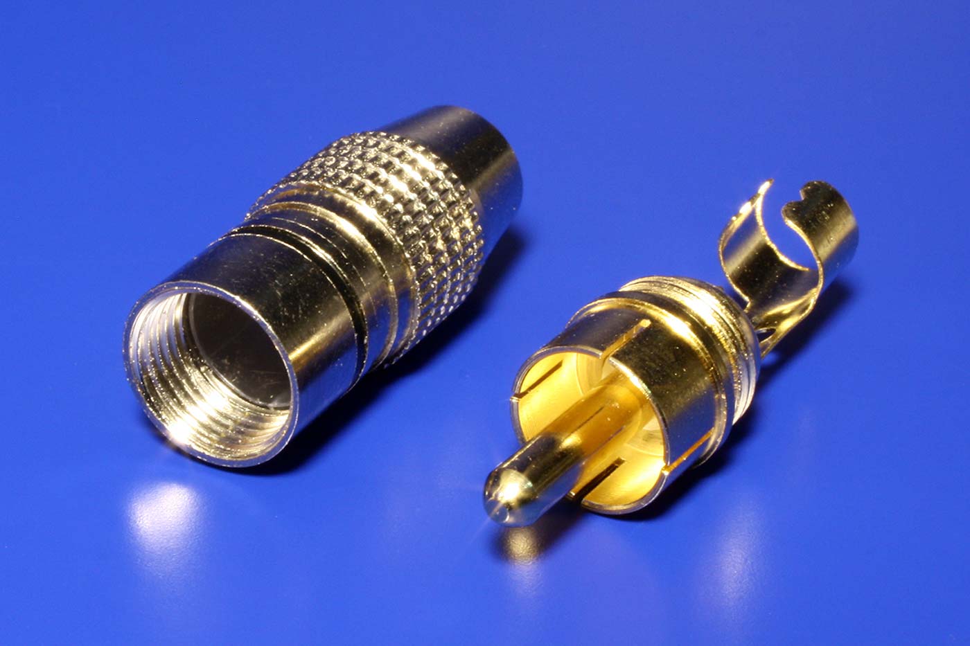 Audio/video konektor cinch (RCA). Pro montáž na kabel.