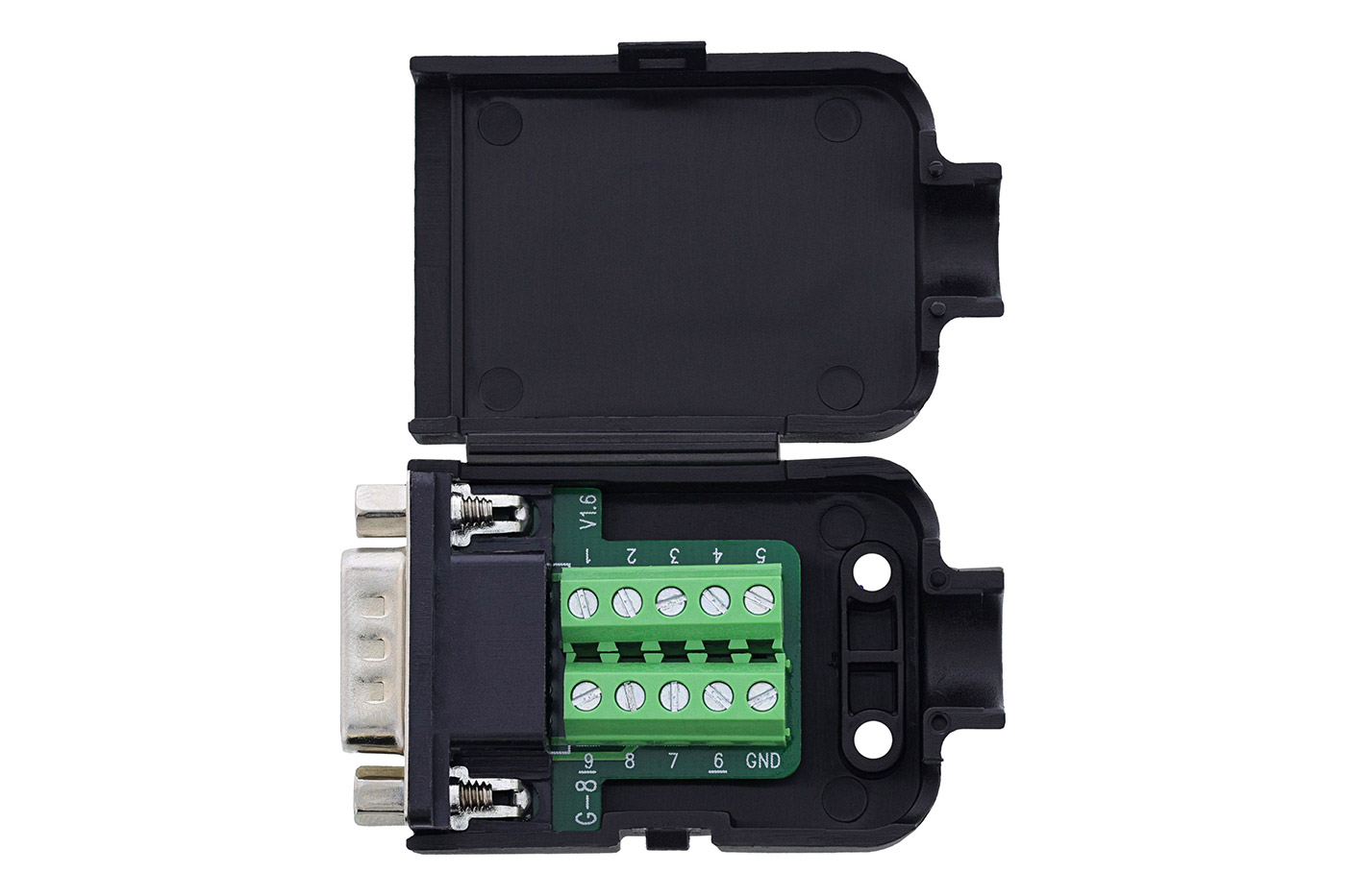 Konektor MD9 se šroubovací svorkovnicí v krytu.