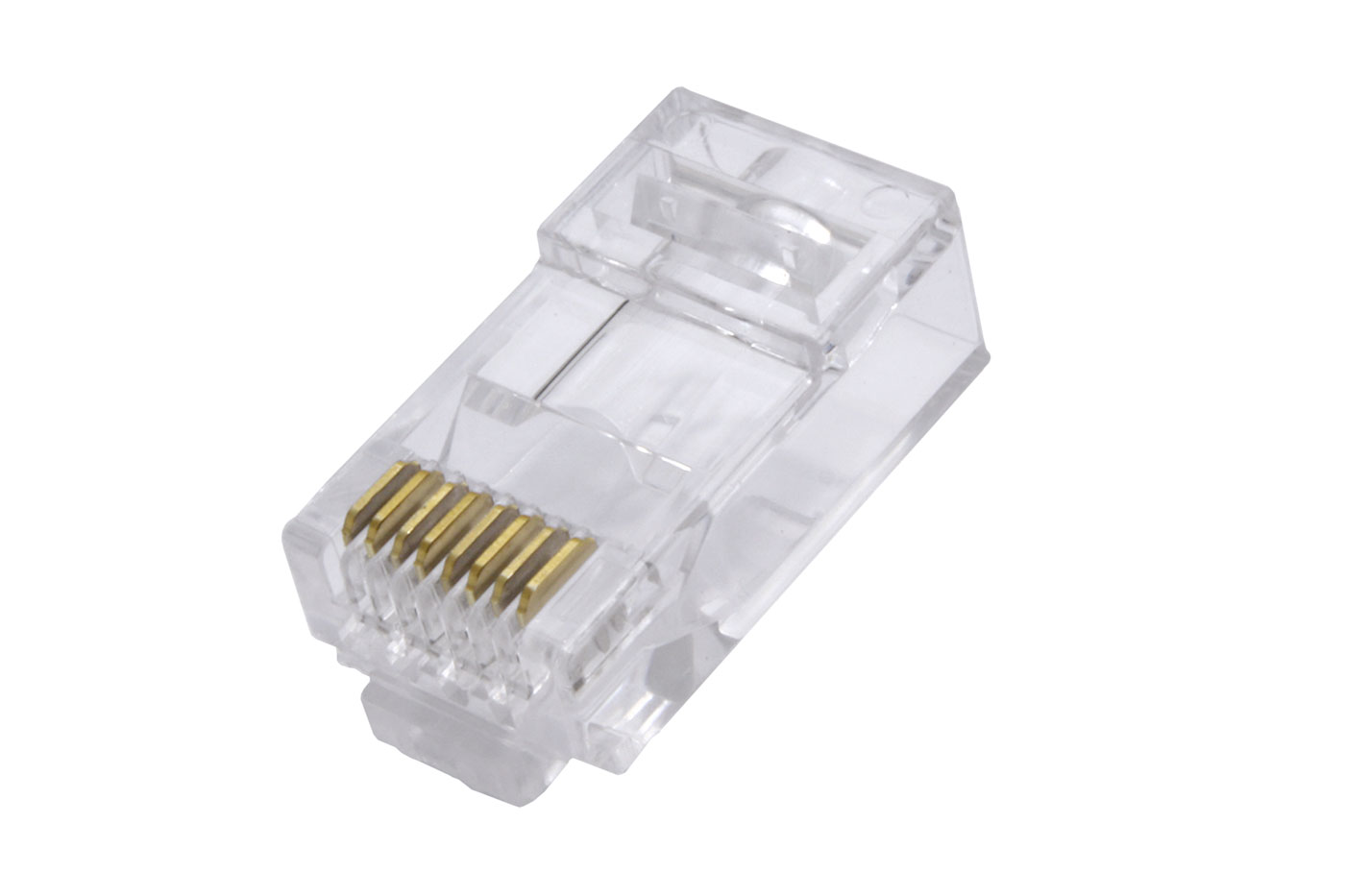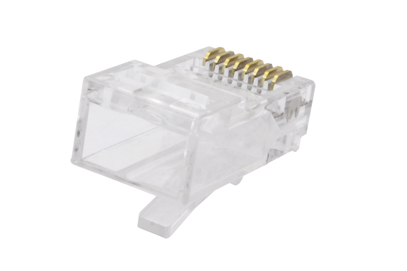 Použití: Je určen k nalisování (krimpování) na kulatý kabel 8 pozic 8 kontaktů (8P8C). Vodiče (lanko nebo drát) se protahují skrz konektor a po zalisování se na přední straně odstřihnou.;