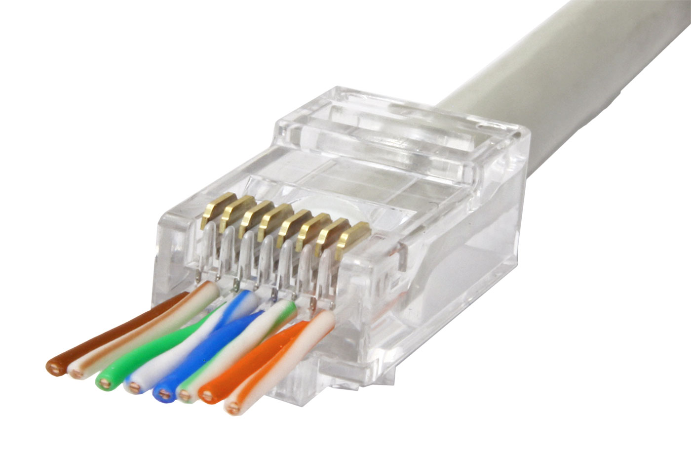 Je určen k nalisování (krimpování) na kulatý kabel 8 pozic 8 kontaktů (8P8C). Vodiče (lanko nebo drát) se protahují skrz konektor a po zalisování se na přední straně odstřihnou.