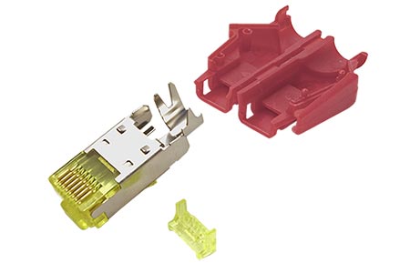 Stíněný konektor RJ45 kat. 6a určený k nalisování (krimpování) na kulatý kabel AWG 24 - 27, 8 pozic 8 kontaktů(8P8C), na lanko. Včetně krytky.