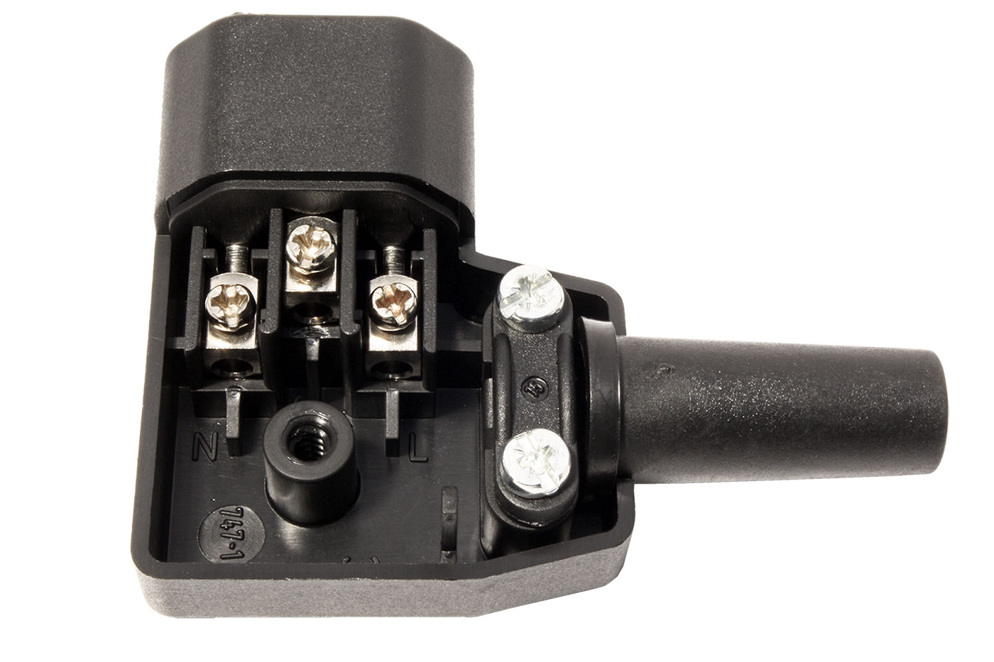 Použití: Pro zakončení napájecího kabelu s vývodem do boku.;