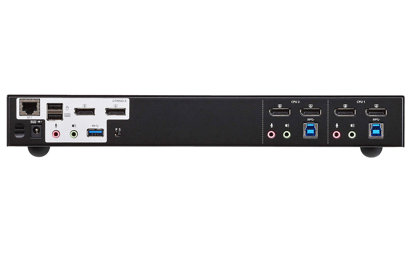 Přepínač pro ovládání 2 počítačů (klávesnice, 2x video, myš, audio) z jednoho stanoviště (2x DP monitor + USB). Možnost sdílet USB 5Gb/s (USB 3.2 Gen.1 / USB 3.0) zařízení. Možnost spojení 2 přepínačů paralelně pro zobrazení 4x DP.;