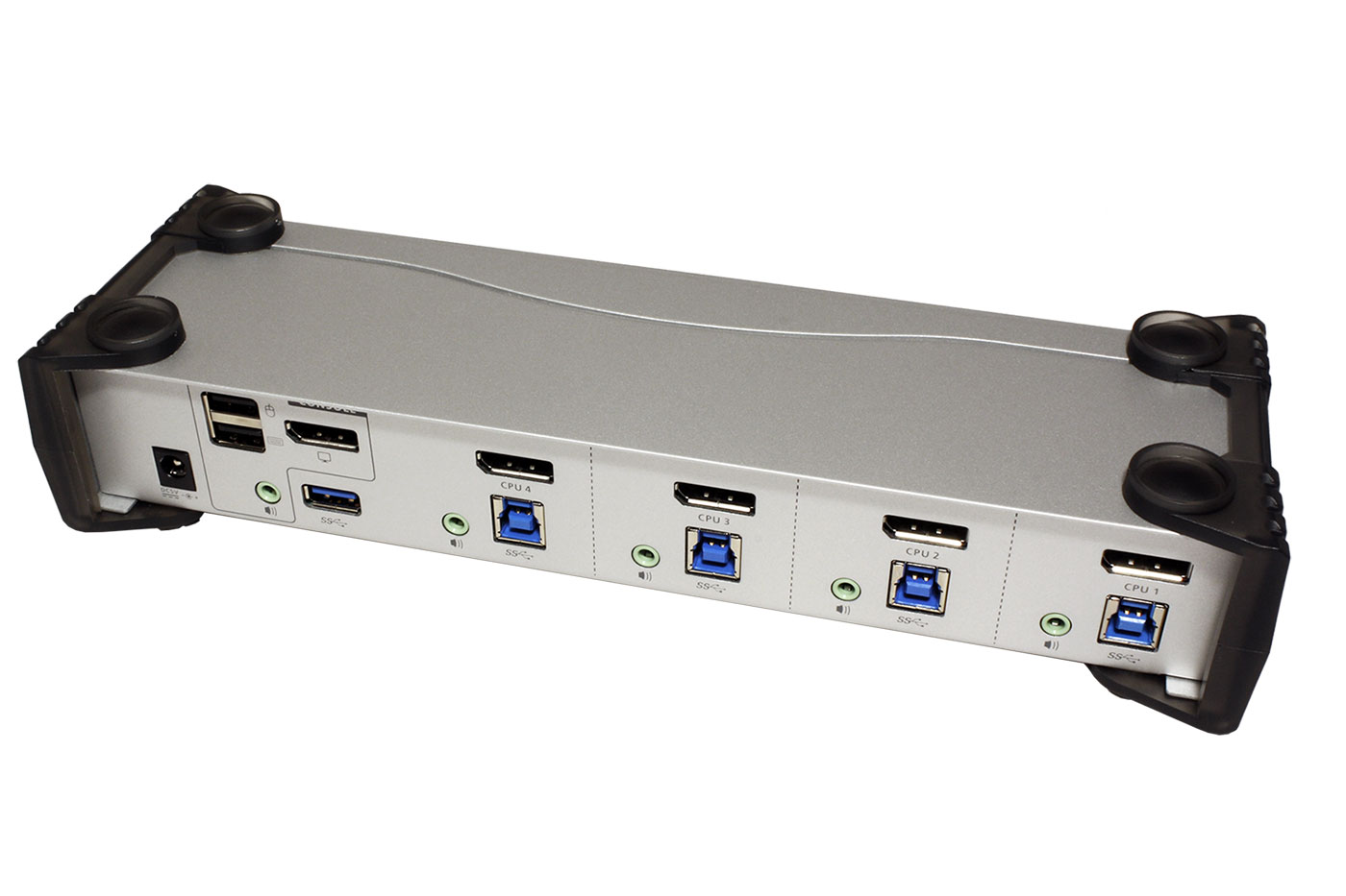 Přepínač pro ovládání 4 počítačů (klávesnice, video, myš, audio) z jednoho stanoviště (DP + USB). Možnost sdílet USB 5Gb/s (USB 3.2 Gen.1 / USB 3.0) zařízení.