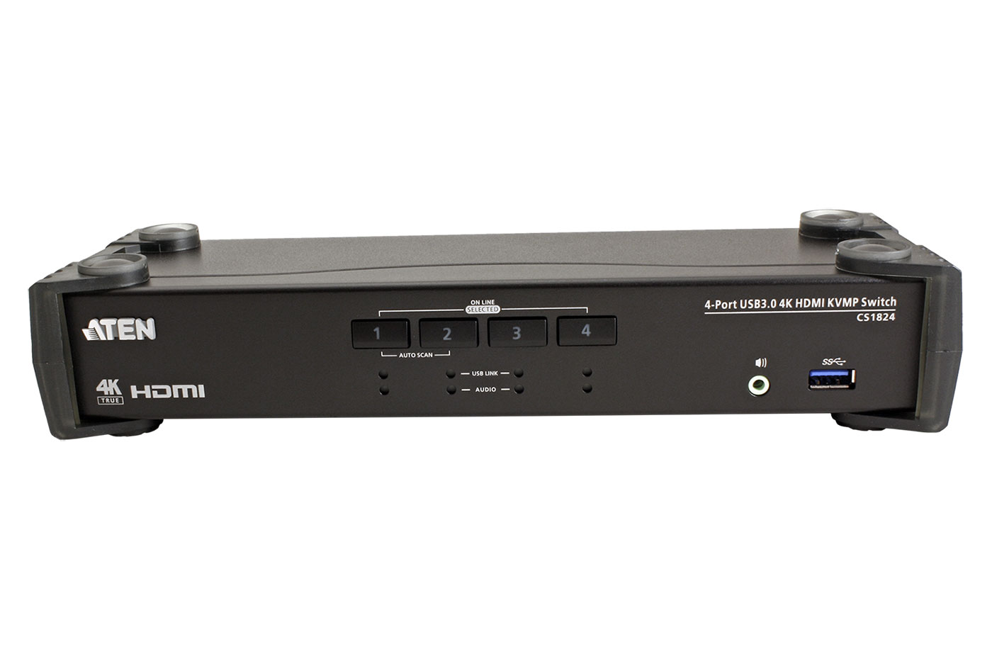 Přepínač pro ovládání 4 počítačů (klávesnice, video, myš, audio) z jednoho stanoviště (HDMI + USB). Je možno připojit PC s HDMI a USB klávesnicí. Možnost sdílet zařízení USB 5Gb/s (USB 3.2 Gen.1 / USB 3.0).