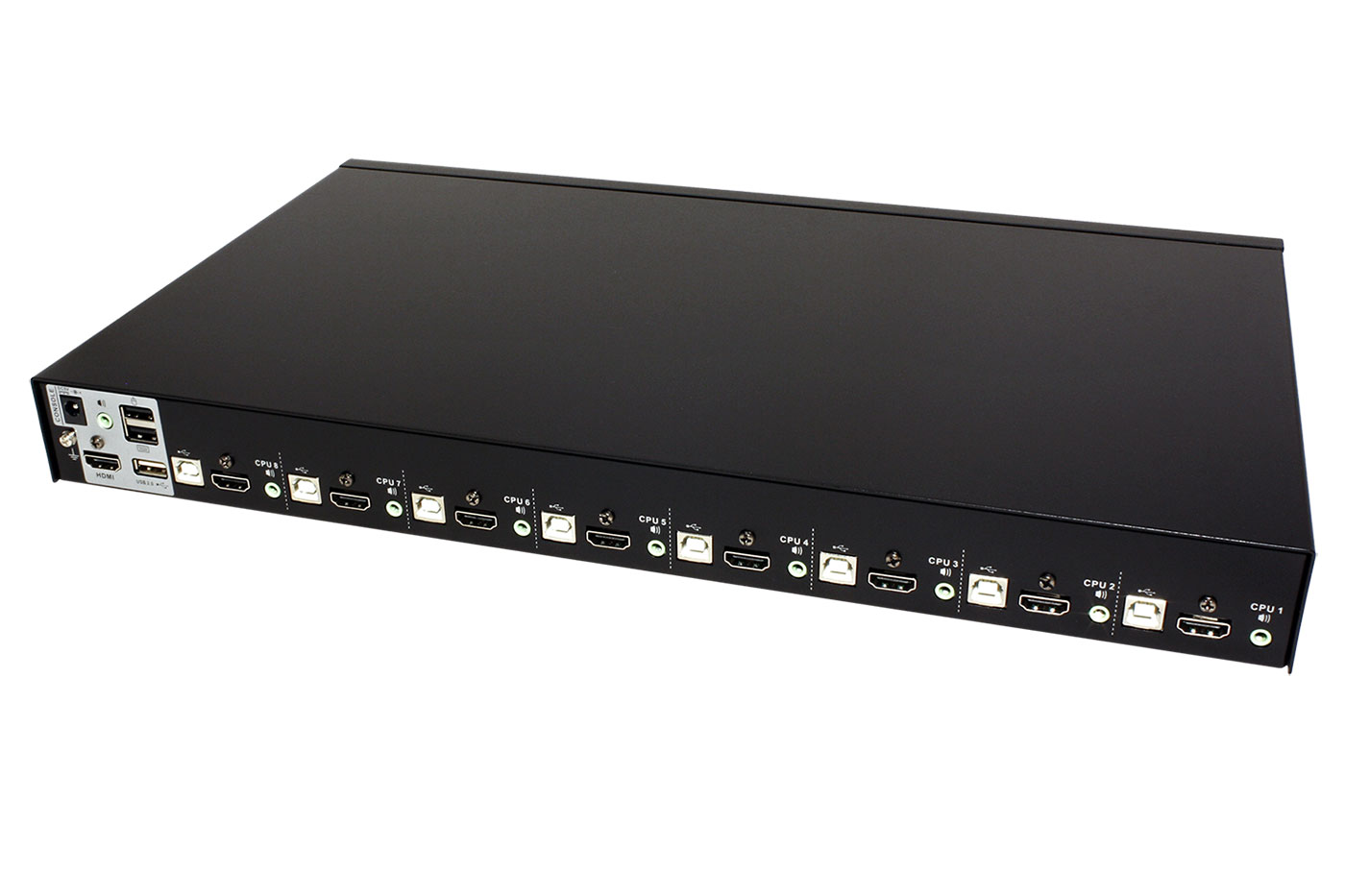 Máte více počítačů a nechcete mít na stole několik monitorů, klávesnic a myší pro každý počítač zvlášť? Ovládejte všechny počítače z jednoho místa! K tomuto přepínači můžete připojit až 8 počítačů s grafickým výstupem HDMI a ovládáním přes USB (klávesnice a myš). K připojeným počítačům je možno také sdílet další USB zařízení (například tiskárnu…). Jednoduše připojte HDMI monitor, USB klávesnici, myš a reproduktory, a mějte svoje počítače pod kontrolou.