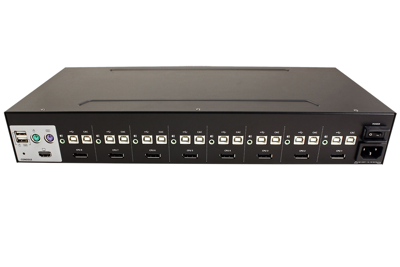 Přepínač pro ovládání až 8 zabezpečených počítačů (klávesnice USB, video DisplayPort, myš USB a audio) z jednoho stanoviště. Splňuje požadavky PSS PP v3.0 (Protection Profile for Peripheral Sharing Switch, Version 3.0) certifikovaný NIAP (National Information Assurance Partnership).