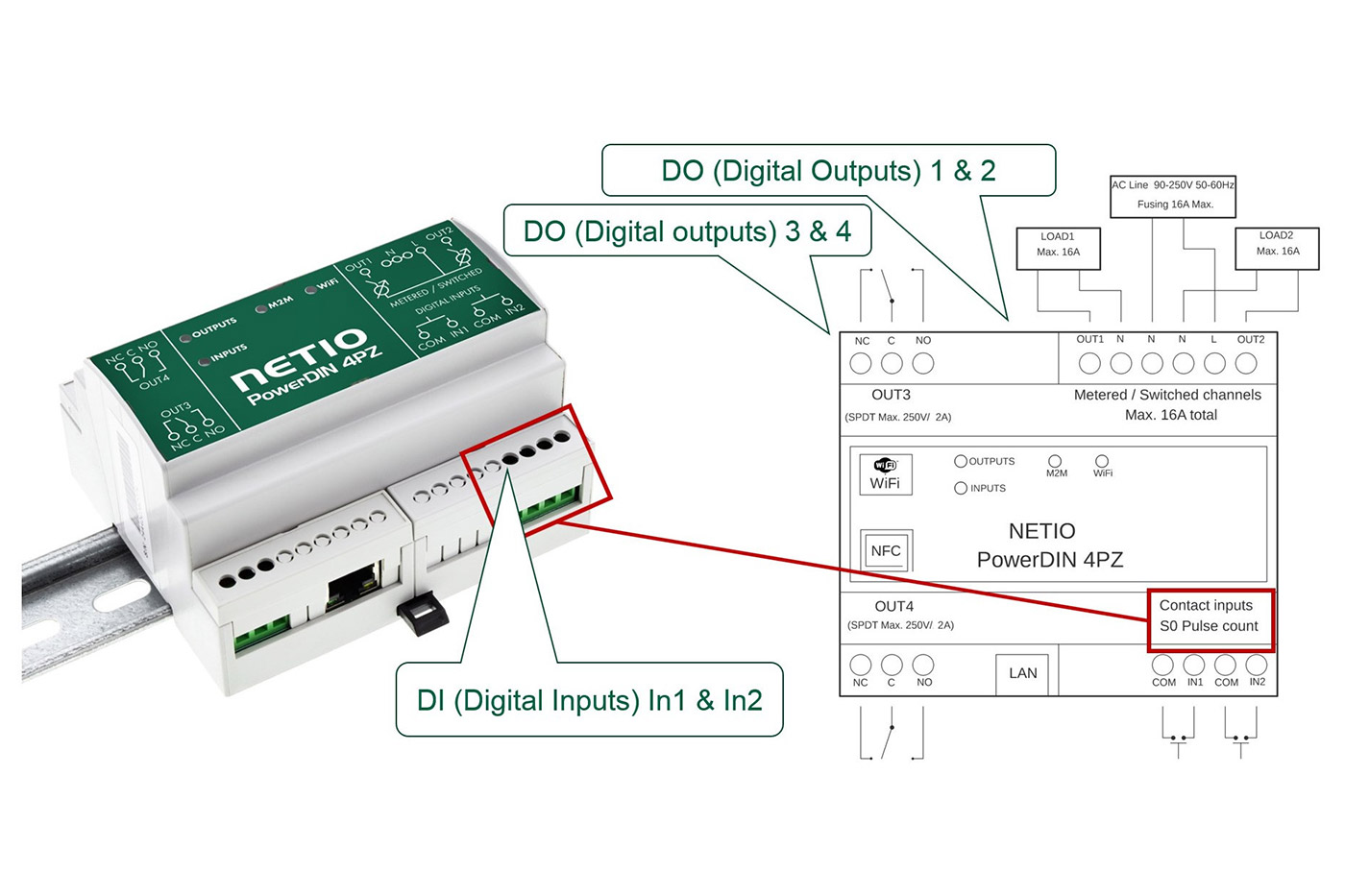 Další informace: Ovládání pomocí web rozhraní, podporuje NETIO Cloud a Open API rozhraní. Každý ze 4 výstupů lze samostatně vypnout/zapnout z webu zařízení nebo přes Open API a NETIO Cloud. Vzdáleně lze číst stavy 2 DI vstupů pro kontakt (S0 čítač impulsů). Open API umožňuje integraci do systémů 3tích stran pomocí různých protokolů (JSON, Modbus/TCP, SNMP, MQTT-flex, Telnet, ..).;