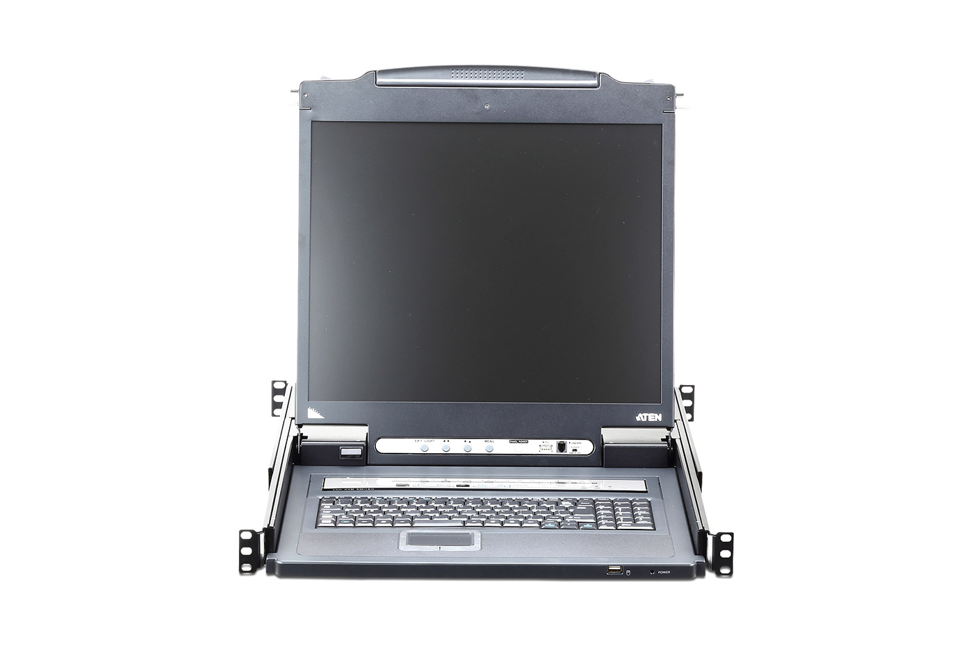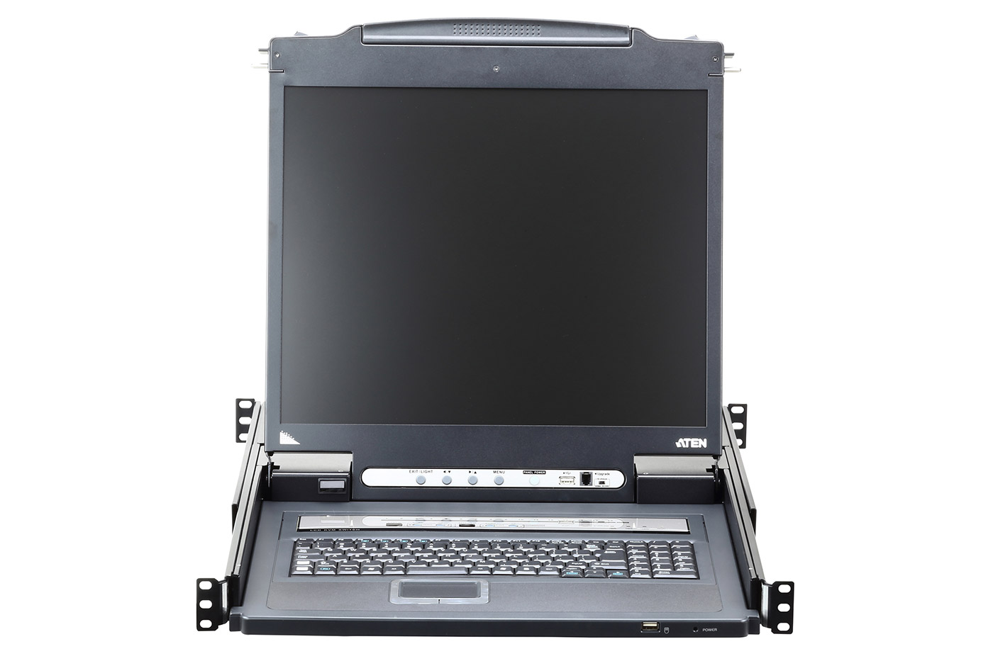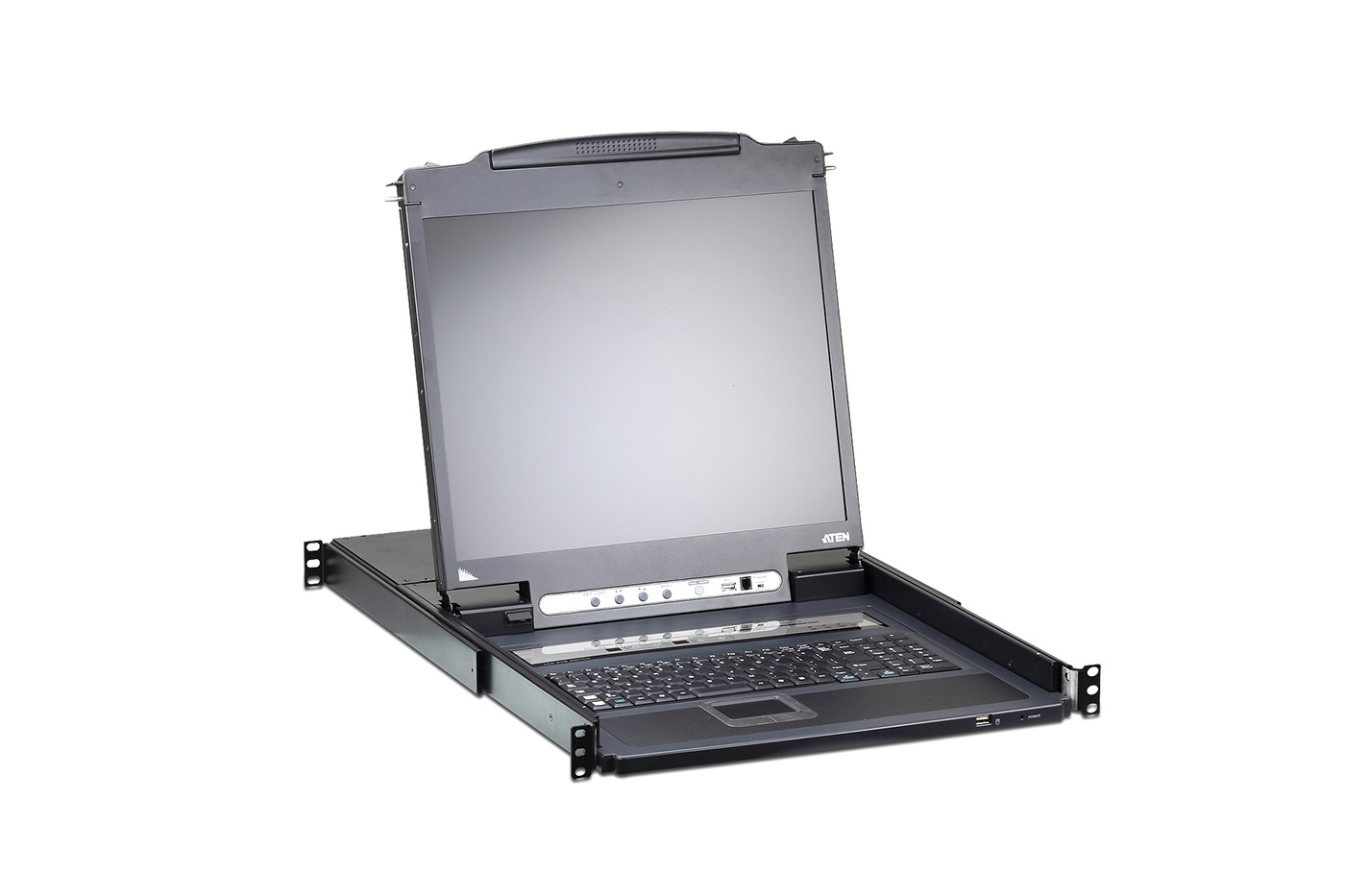 Konzole (klávesnice, touchpad a 17 " LCD displej) s integrovaným přepínačem, určená pro montáž do 19" rozvaděče (výška 1U) s možností ovládání po IP.;