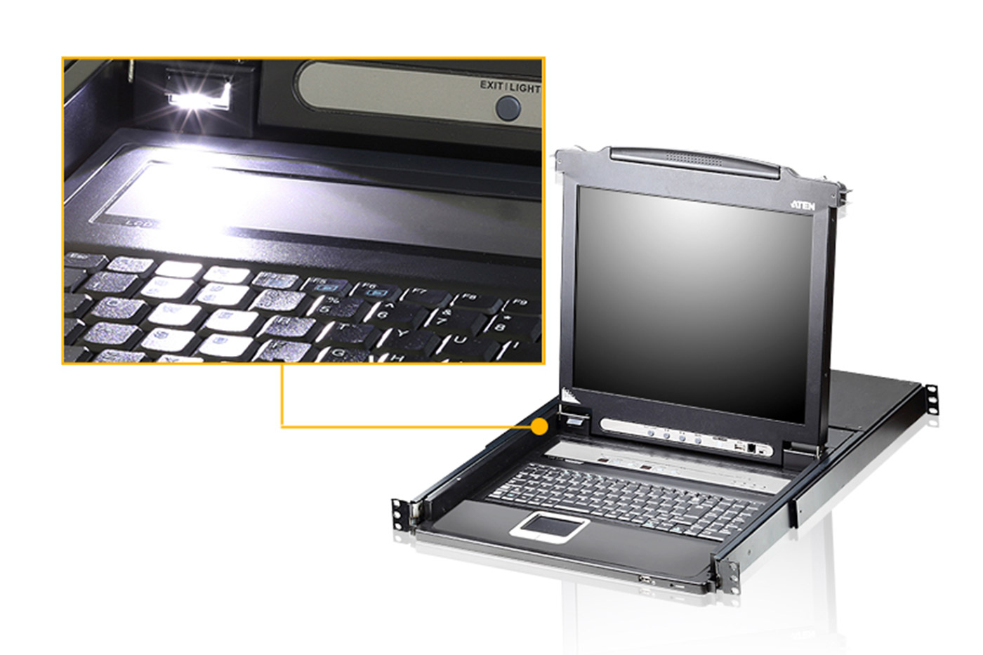 Konzole (klávesnice, touchpad a 19 " LCD displej) s integrovaným přepínačem, určená pro montáž do 19" rozvaděče (výška 1U).