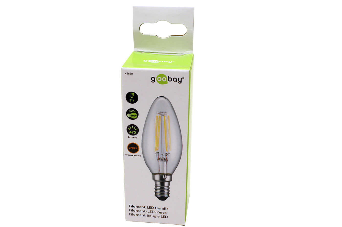 goobay LED žárovka Filament B35, E14, 2700K, 4W, 470lm, 300°, čirá