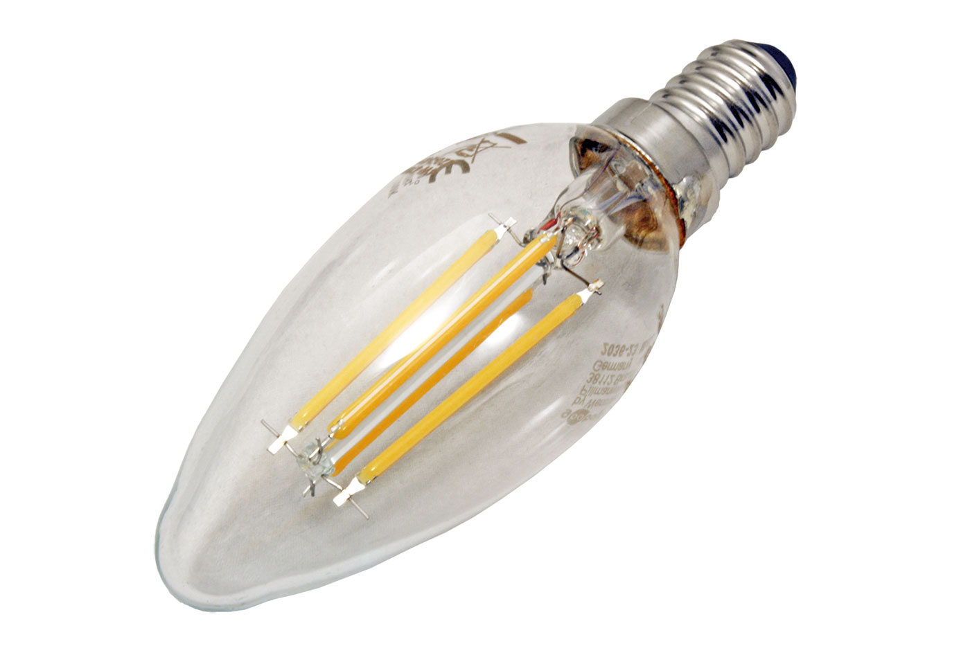 Kvalitní, úsporné LED světlo nevyzařující UV a IR. Klasická svíčka se závitem E14. Čirá.