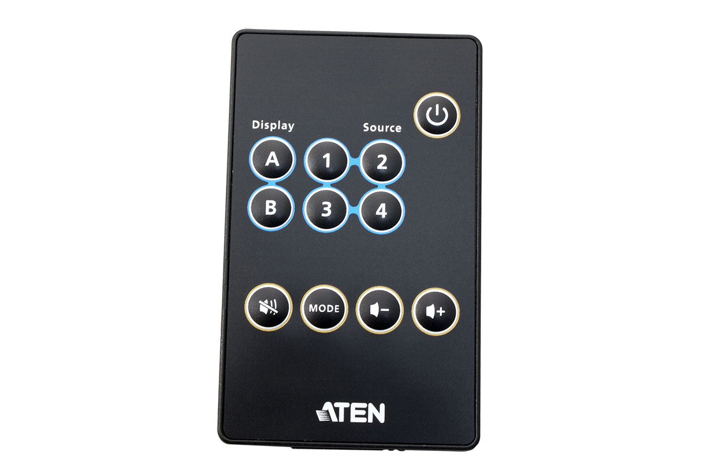 - tlačítky na předním panelu (4x vstup + 2x výstup + 1x umlčení + 1x mode)