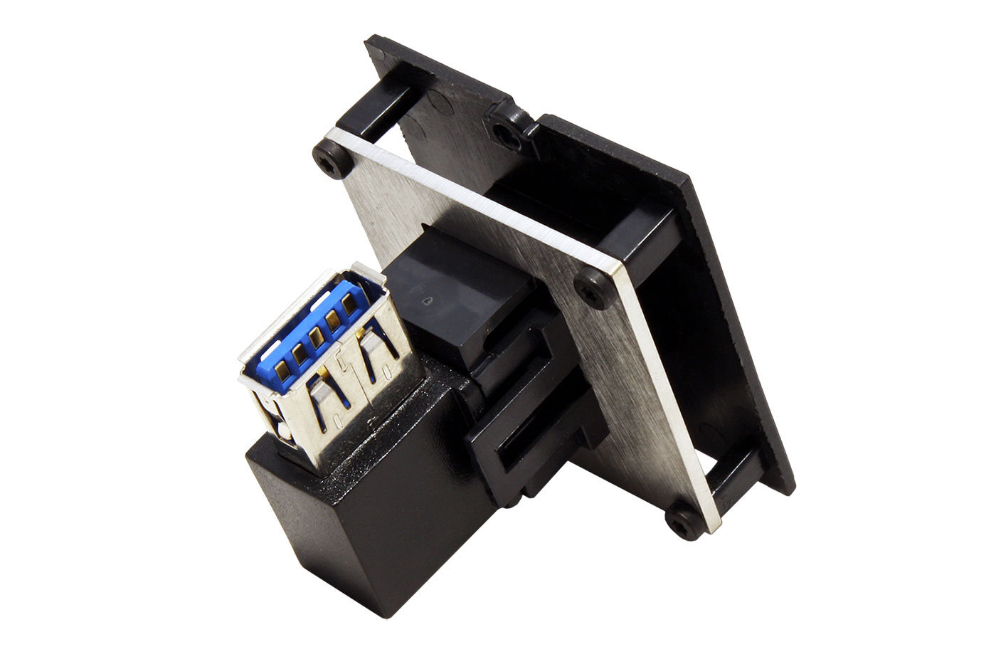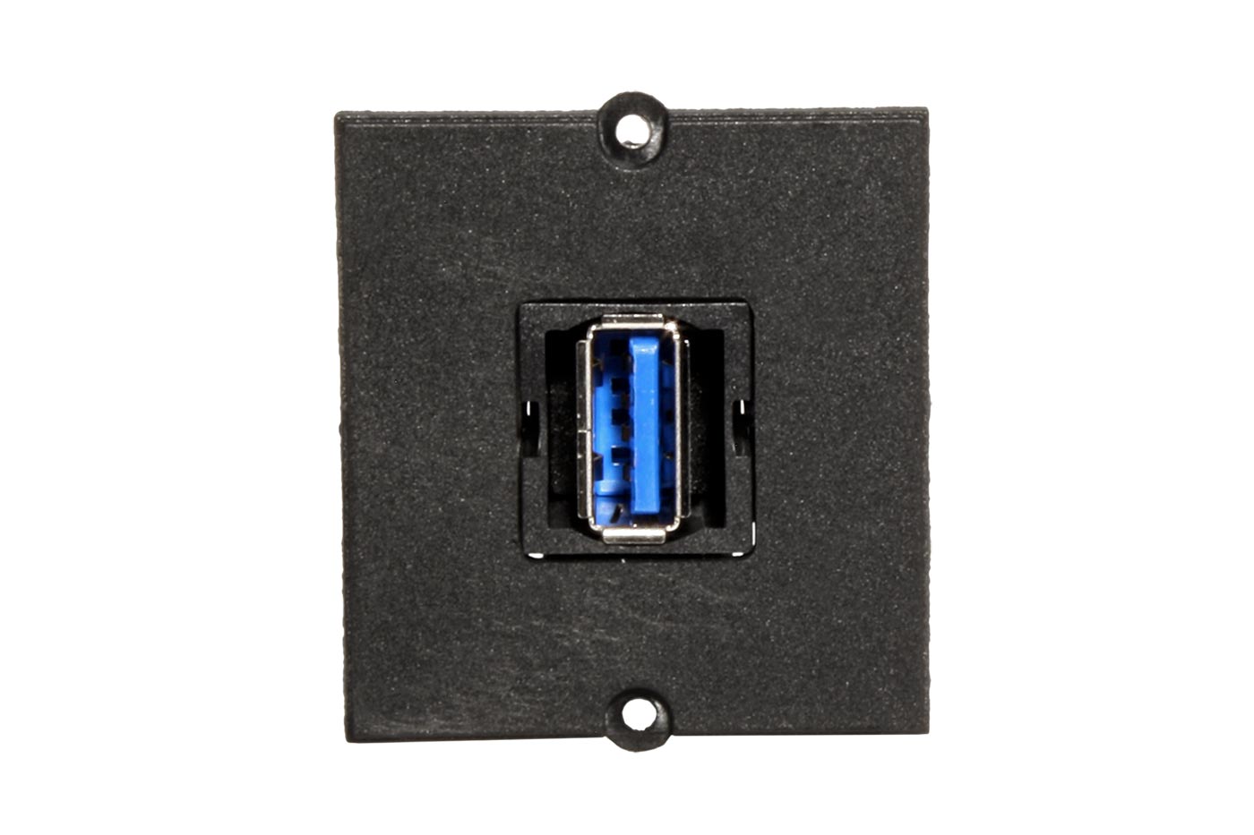 USB spojka je zapojena 1:1 a proto s použitím standardního USB 3.0 A-A kabelu nefunguje USB 3.0 přenos (pouze USB 2.0). S použitím standardních (křížených) USB 3.0 A-A kabelů musí být v propojení zapojeny 2 spojky 1:1 (například při propojení 2 spojek v různých panelech). Při použití jedné spojky je nutno použít USB 3.0 A-A kabel 1:1.;
