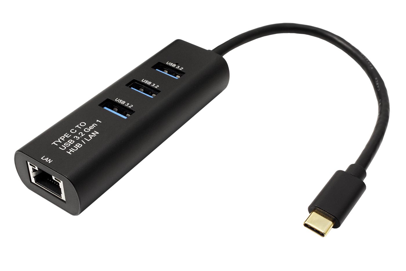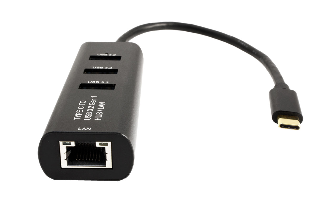 Adaptér pro připojení Ethernet sítě do PC přes USB C konektor. S 3 portovým USB 5Gb/s (USB 3.2 Gen.1 / USB 3.0) hubem.;