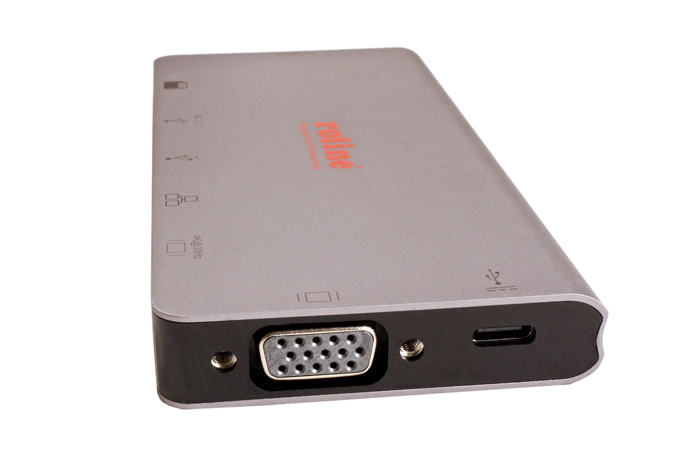 ROLINE Multiport adaptér USB C(F) -> HDMI (4K@30Hz), VGA, 2x USB 3.0, 1Gb LAN, SD, USB C(PD)