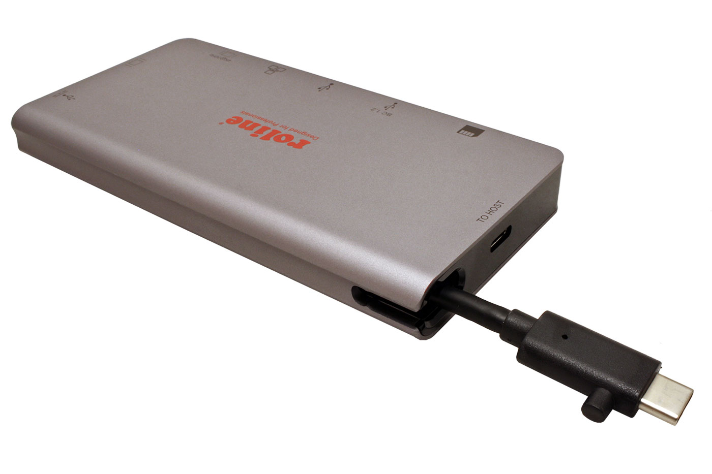 Umožňuje jednoduché připojení dalšího zobrazovacího adaptéru se dvěma výstupy (VGA a HDMI mohou zobrazovat současně), USB 3.0 zařízení a čtečky SD karet k PC, notebooku, tabletu. Zároveň je možno připojit počítač k počítačové síti. Možnost napájení připojeného zařízení přes USB C konektor.