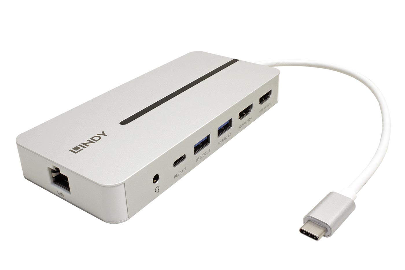 Lindy Multiport adaptér USB C (M) -> 2x HDMI A(F) (4K@30Hz) , 2x USB3.0 A + USB C, 1Gb LAN, audio, PD 100W