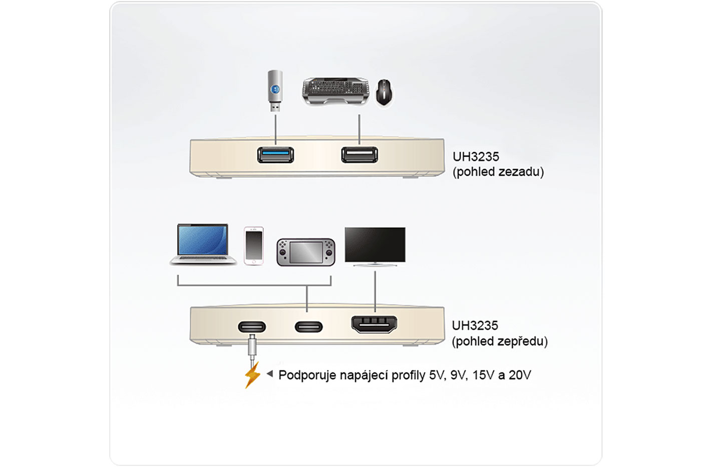 Grafický adaptér (výstup HDMI) s připojením přes konektor USB C. S možností připojení jednoho USB 5Gb/s (USB 3.2 Gen.1 / USB 3.0) a jednoho USB 2.0 zařízení a nabíjení přes adaptér s USB C konektorem.