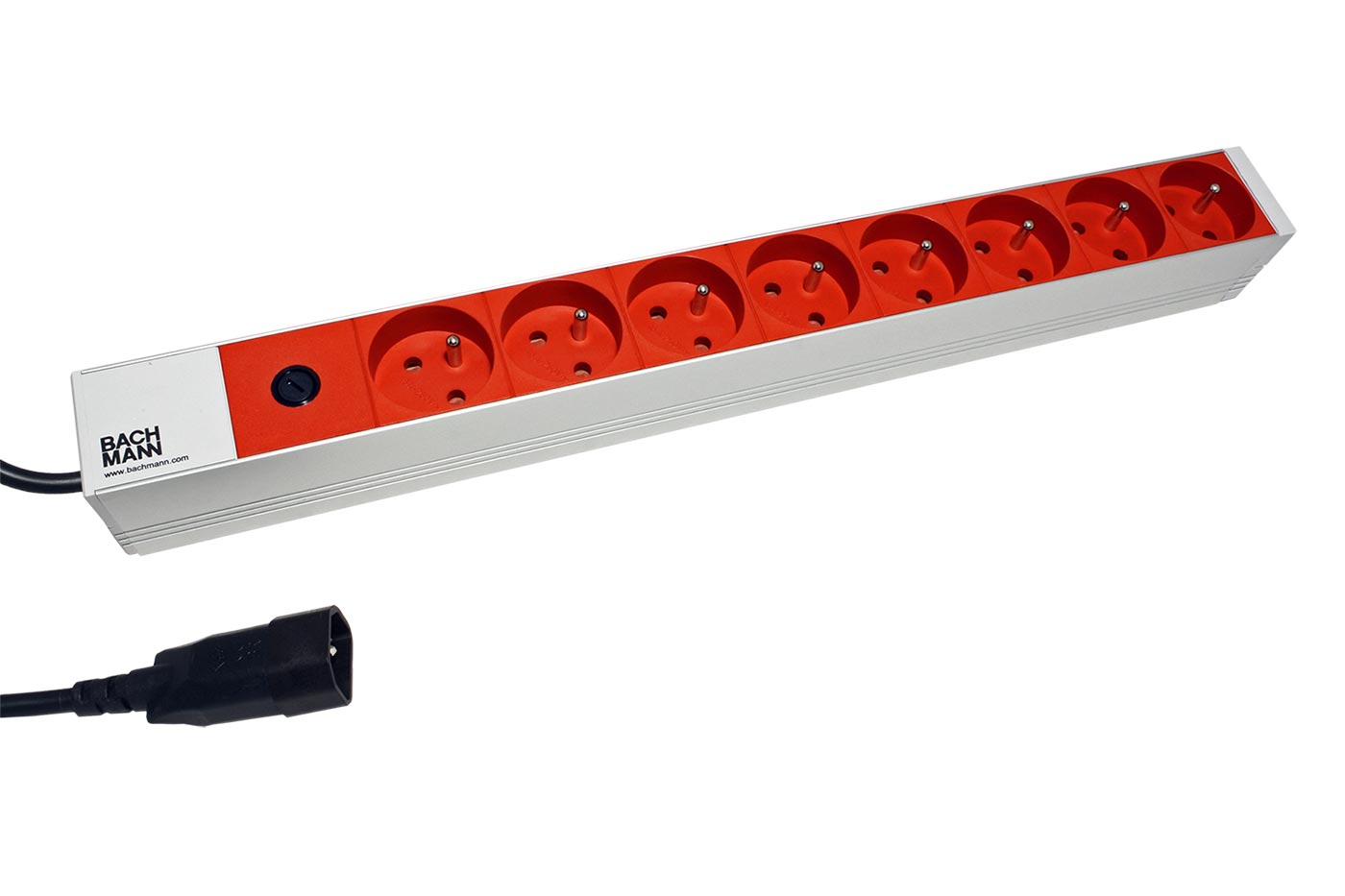 BACHMANN Napájecí panel 1U, 8x zásuvka CZ, vidlice IEC320 C14, červený, 2m (333.4101)