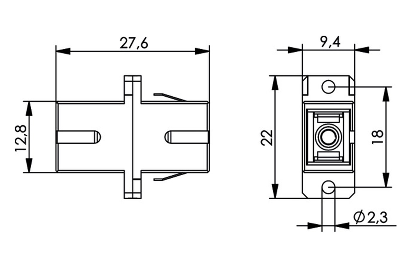 Spojka / průchodka pro optické kabely s konektory SC. Pro jedno vlákno (simplex).;