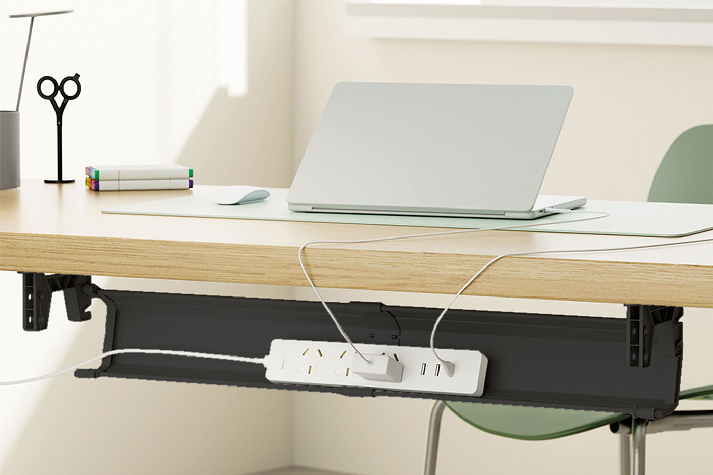 Kabelový kanál pro uspořádání kabeláže pod deskou stolu.