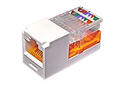 Konektor RJ45 kat.5e v provedení pro osazení do Panduit systému. Nařezávací konektor 180°.