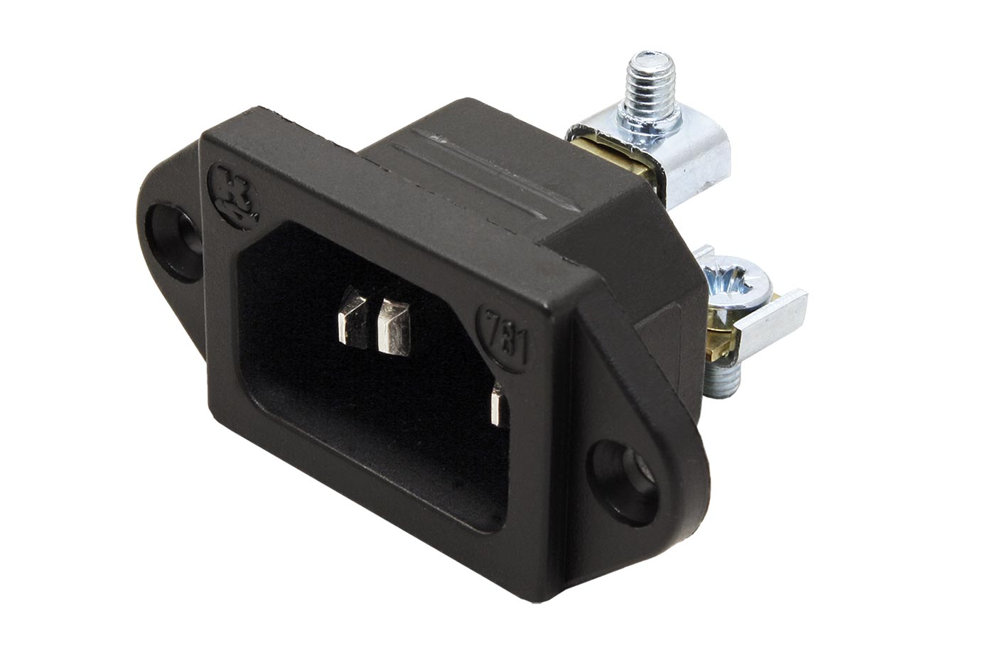 Síťový konektor panelový pro PC 230V/10A, samec (IEC320/C14).;