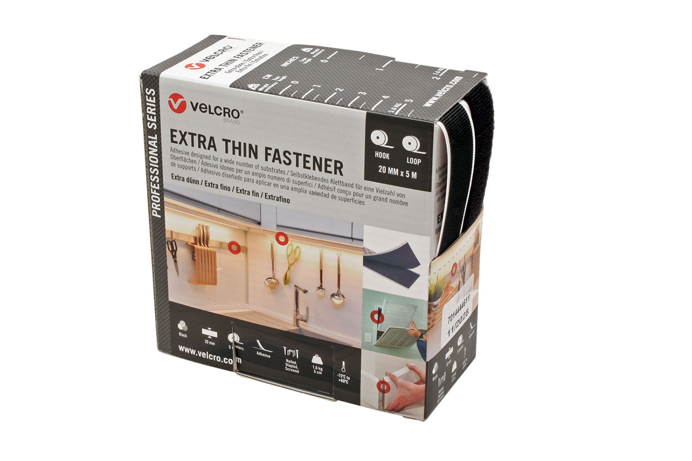 VELCRO Páska se suchým zipem, extra tenká, nalepovací, 20mm x 5m, černá